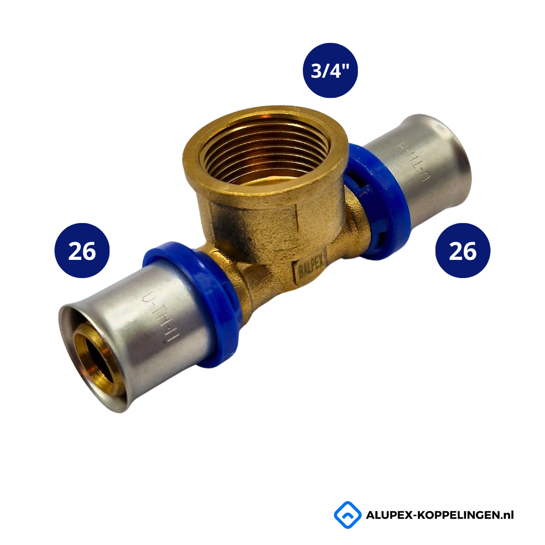 Perskoppeling T-stuk 26 x 3/4 binnendraad x 26